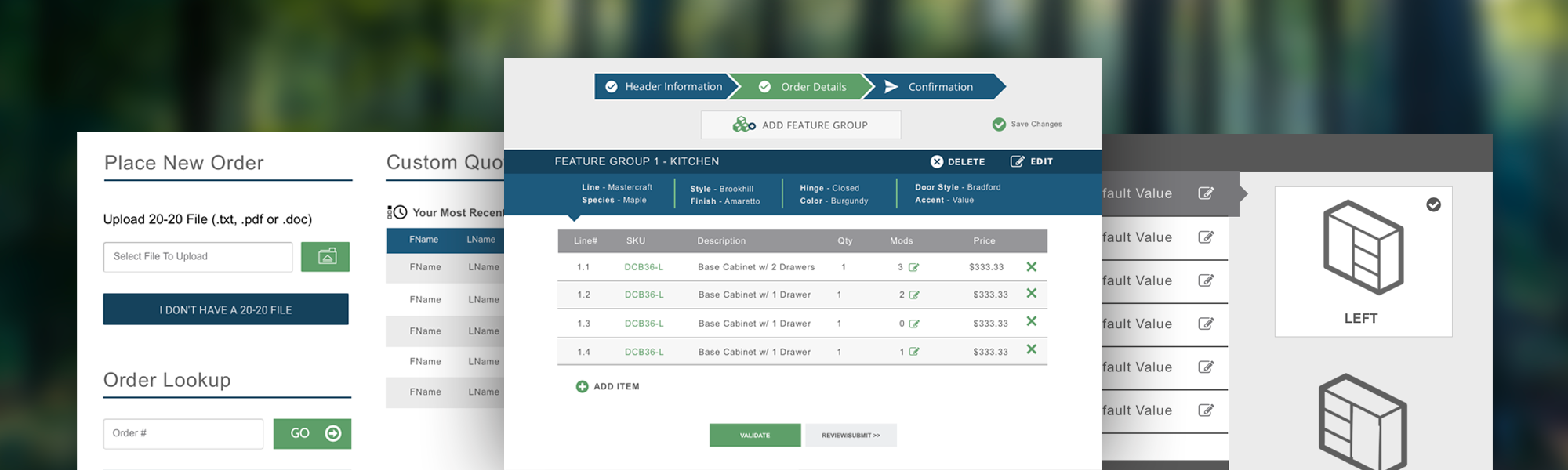 The main purpose of this project was to design an easily accessible technical solution to manage and change orders, check product specifications and styles, and create a user-friendly system where they could not only search and manage orders but better organize products into feature groups of the rooms the products were designed for while placing an order.