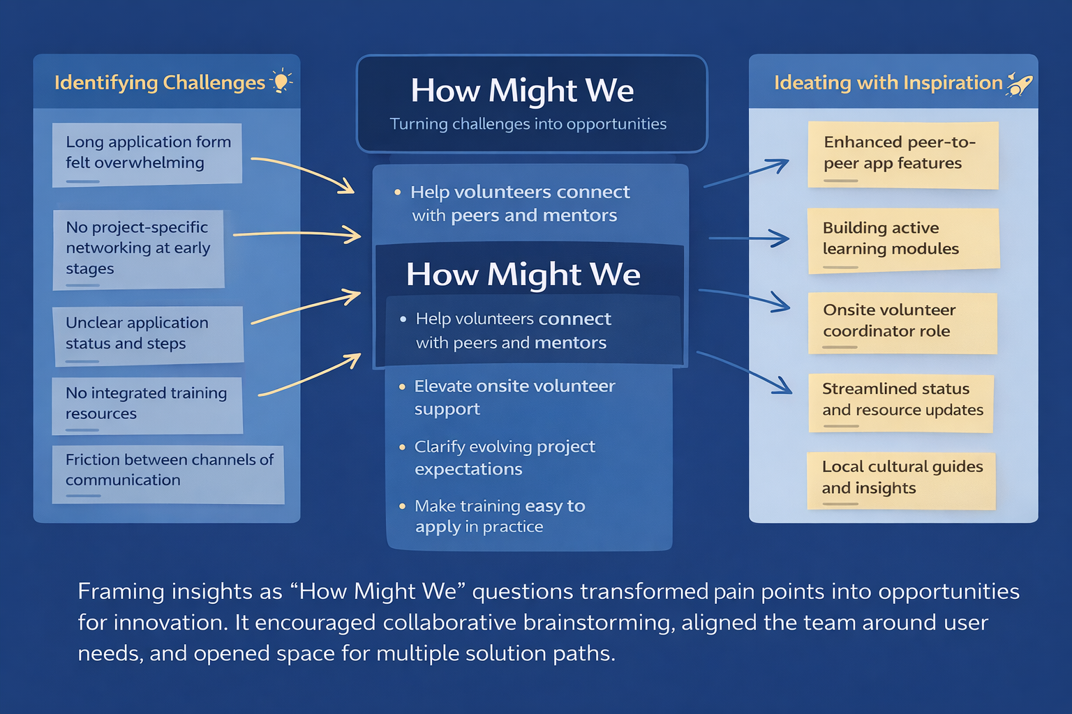 These insights culminated in a clearly articulated problem statement that aligned stakeholders around a shared understanding of the challenge and set a strong foundation for iterative, empathetic design.