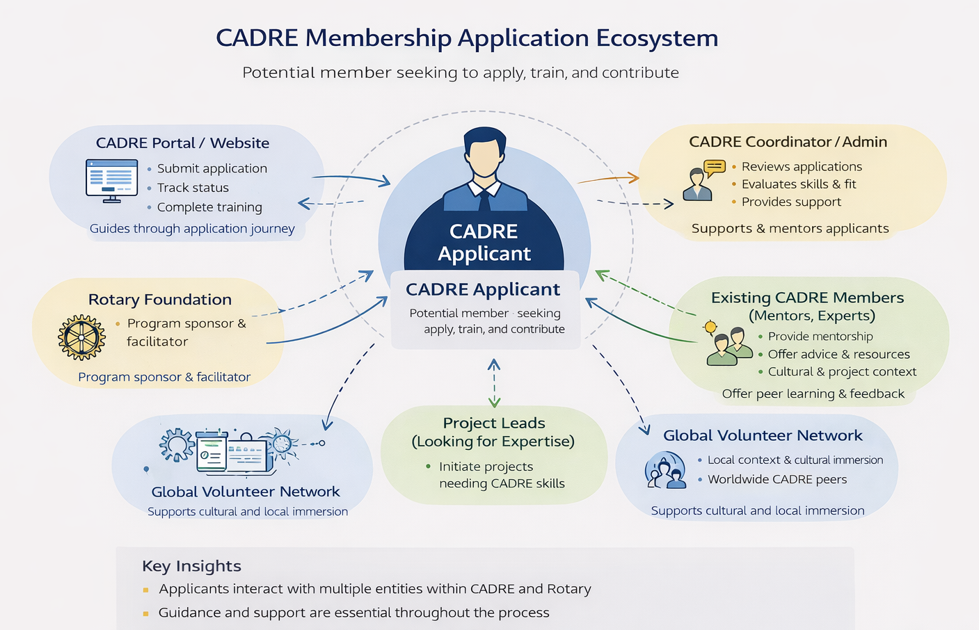 In parallel, I led ecosystem mapping to clarify the broader system surrounding CADRE applicants, including coordinators, mentors, partner organizations, and training resources. This helped identify breakdowns between roles, responsibilities, and information flow that directly impacted applicant confidence and decision-making.