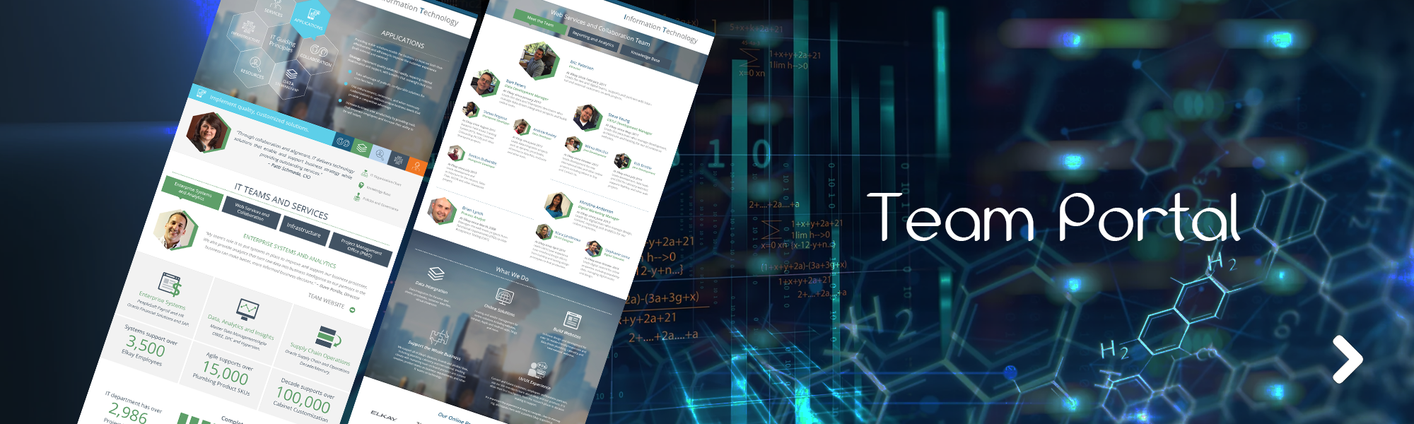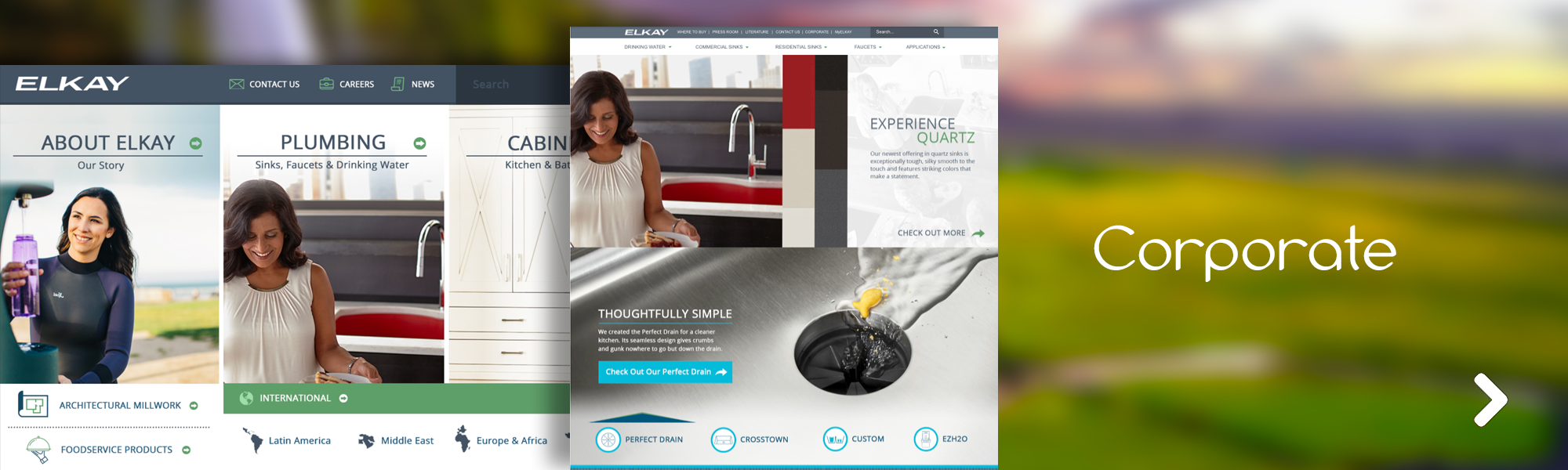Management of UX/UI and visual design for Elkay's large-scale, data-driven plumbing and cabinetry web properties and employee portal IT homepage.